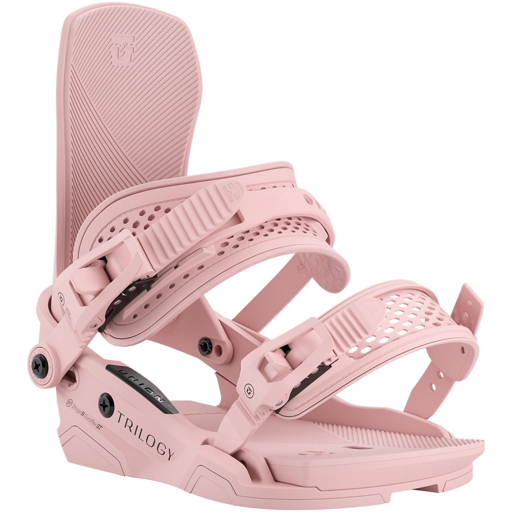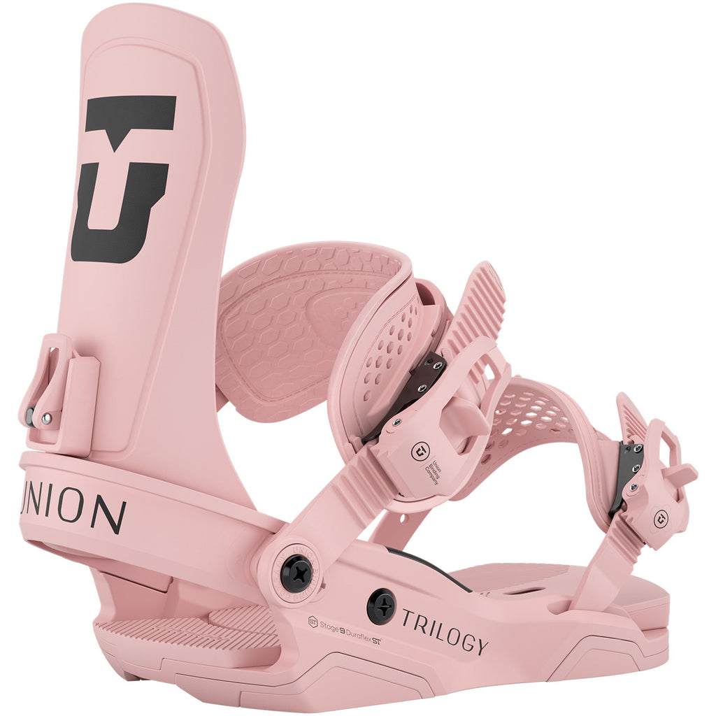 The Union Womens Trilogy Bindings have been redesigned from the ground up to provide an even smoother and more responsive ride than ever before. By redesigning just about every part of this binding you no longer how to debate between different binding models for riding specific terrain, the Trilogy can destroy groomers, stomp tricks in the park, and float effortlessly through powder.