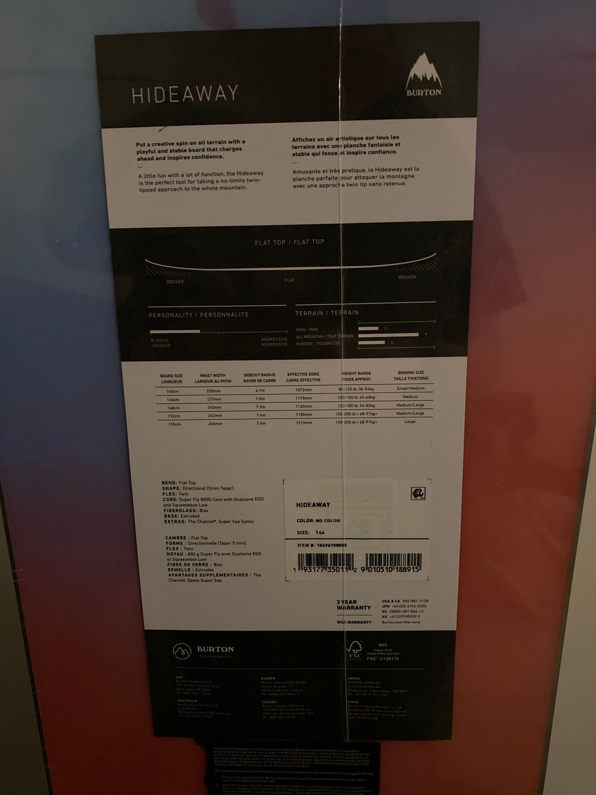 The Burton Hideaway is the perfect first board, and one that you can keep for years to come. Turns are effortless and catch free thanks to the stable and forgiving Flat Top camber profile, so you can worry less and just focus on having fun.
