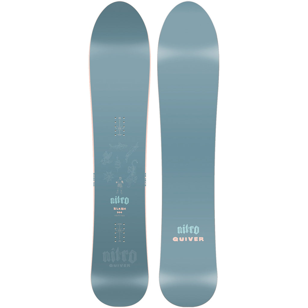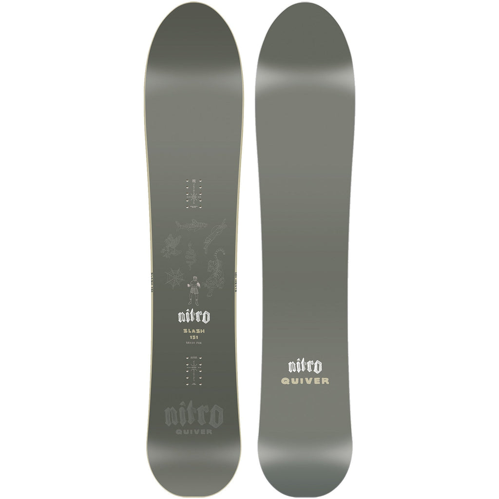 The Nitro Quiver Slash has a 3D Surf Tech design, which gives the nose a convex shape that transitions into the front binding for a smooth and surfy feel in powder. Balancing that out is the concave shape in the tail, which gives you quick control and all the response you would need.