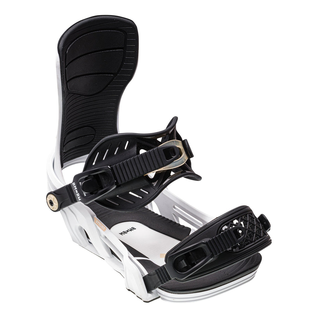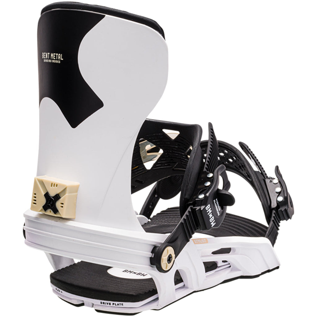 The 2024 Bent Metal Stylist brings reliable all mountain peak performance to the table with this mid flexing womens binding. This versatile binding comes fully loaded with a magnesium fibre drive plate and solid nylon highback, giving you both increased response, and when paired with the Power Band Ankle strap you will enjoy one of the most comfortable rides on the mountain, perfect to bring out your inner style.