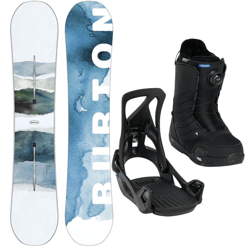 The Burton Womens Step On Package is the simplest way to dive into Burton’s Step On system. It pairs the easy riding and comfortable Burton Mint Step On Boot with the perfectly sized Step On Binding, so you can hit the slopes straight out of the box and not have to think about getting the right size boot and binding combination. Perfect for riders ready to move beyond rentals, this package gets you set up quickly and comfortably, making your time on the mountain effortless from the very first run.
